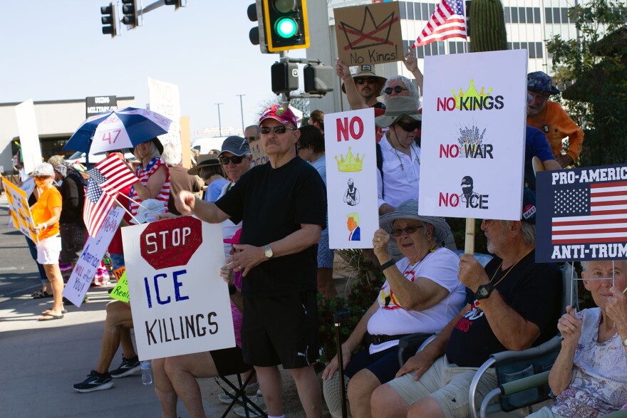 Yuma County residents came out to the latest No Kings rally against Trump, U.S. Immigration and Customs Enforcement (ICE) and the war in Iran on Saturday, March 28, 2026.